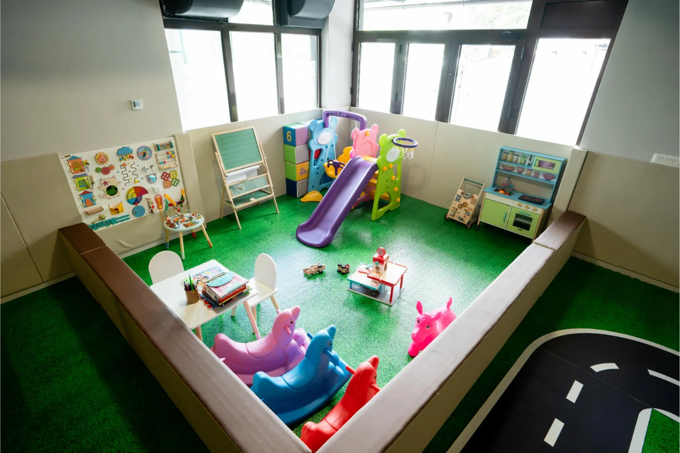Roditelji ne brinite, iako su deca naš fokus, mislili smo i na vas. Obezbedili smo vam preko 100 kvadrata prostora za opuštanje i razgovor uz piće i klopu.